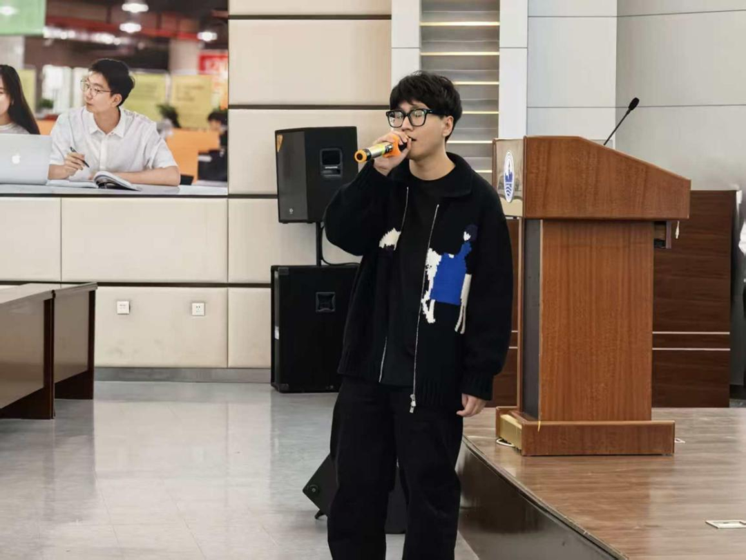 在选手们台上演唱后,评委们从音准节奏、舞台表现、情感传递等多个维度综合考量打分。在紧张计分的间隙,文艺部副部长于喆以一曲《租购》舒缓了大家的情绪,姜楚航老师更是惊喜献唱《我怀念的》片段,极具感染力的嗓音不时引来阵阵欢呼,为大赛增添了一抹师生同乐的温暖色彩。