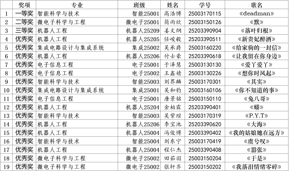 音乐总能给人慰藉与力量,校园的歌声更是将青春奏响。2025年10月21日午后,智能与电子工程学院的“十佳歌手”大赛在A5-602顺利举办。学院工会主席、专任教师姜楚航,学院素质教师徐萌、栾闯、张媛媛,以及院团委学生会文艺部担任此次比赛的评委。