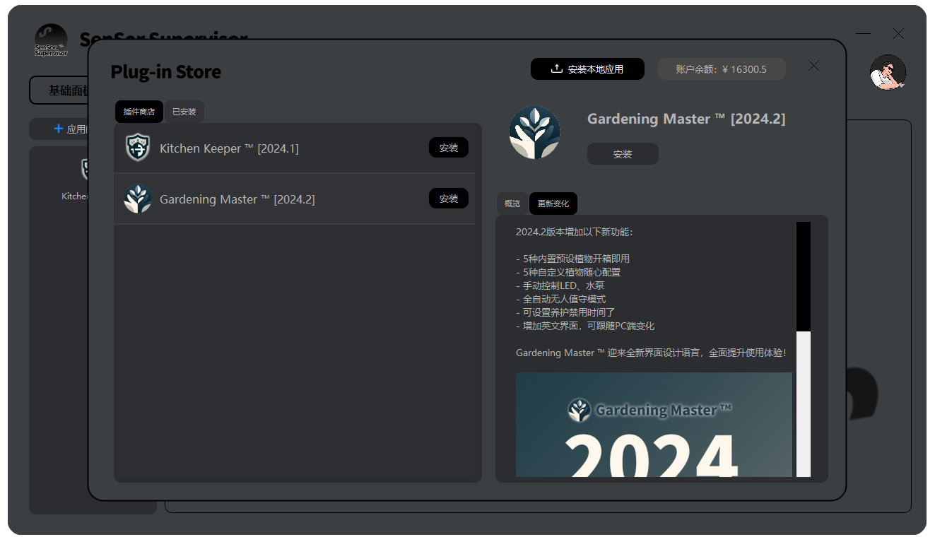 (4) 模块化功能设计:用户可根据不同场景需求灵活加载相应插件(如“园艺大师”“厨房卫士”等),实现个性化定制与智能化管理。
