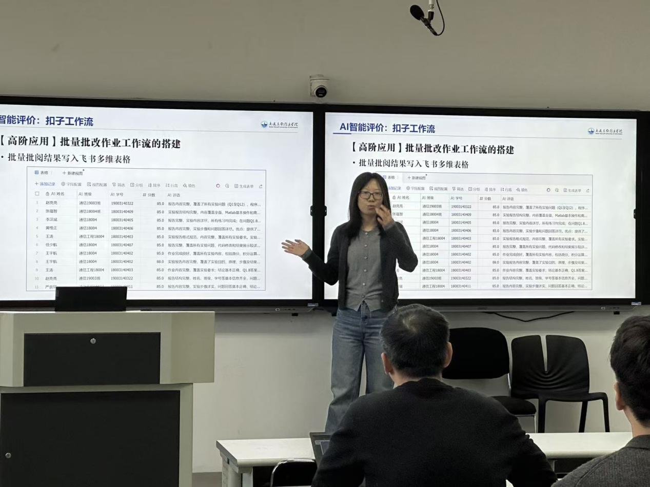 刘宇老师在现场展示了AI工具与教学融合的具体应用场景——基于“扣子工作流”的批量批改作业工作流的搭建,为AI技术在教学管理、过程性评价与教育数字化升级方面提供了可复制、可推广的典型范例。会议还介绍了多种AI结合工具的高效应用,如DeepSeek与ECharts、Napkin、Python等技术结合,能够丰富的数据分析与可视化内容。