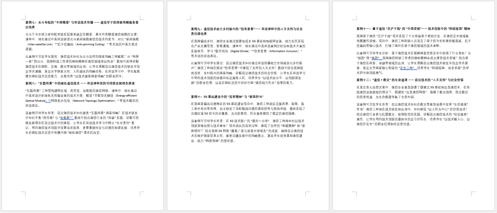 前沿通信技术思政案例库历经多年深耕积累,已构建起涵盖 25 个优质案例的完善体系。案例库紧扣通信技术发展脉络与国家战略需求,从 5G 基站建设、量子通信 “京沪干线” 等早期技术突破场景,到 “天通一号” 卫星通信、6G “空天地一体化” 网络等前沿领域,再到 “通信 + 救灾”“通信 + 非遗传承” 等民生与文化赋能场景,全面覆盖技术攻坚、国家战略、社会服务、生态发展等多元维度。每个案例均深度融合通信专业知识与思政元素,既呈现技术原理与行业实践,又挖掘其中蕴含的家国担当、科研精神、人文关怀与生态责任。案例库通过动态更新机制,持续纳入 “极地通信”“5G + 智能电网” 等新场景案例,为前沿通信技术课程提供丰富的思政教学资源,助力实现 “知识传授” 与 “价值引领” 的同频共振。
