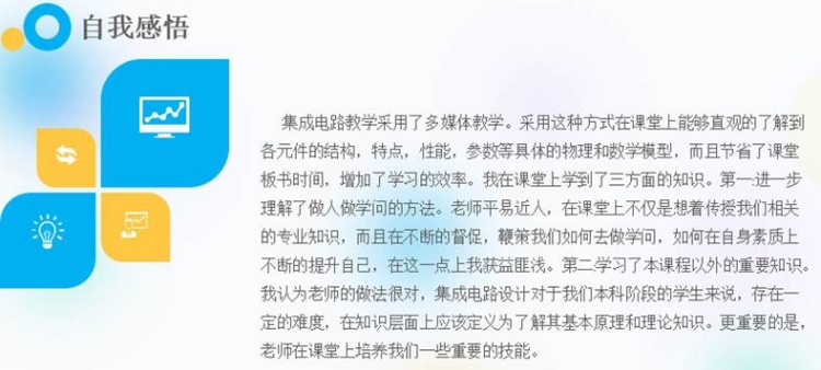 课程实施思政改革学生评价良好,通过思政教学内容的学习,更加坚定了学习方向,明确了学习目标。通过国内外发展现状及差距,更加激起学生的学习热情。学生反映:“在大三超大规模集成电路设计课程学习中感受到了我国集成电路产业人才紧缺的现状,激发了我的爱国情怀,准备好好学习专业课,未来投入我国的集成电路发展事业”,“我国芯片被卡脖子使我深刻意识到科技强国和自主知识产权的重要性,我一定会好好学习,学好各门专业课,培养自己的实践能力,为实现我国的科技自强贡献自己的一份力量”。
