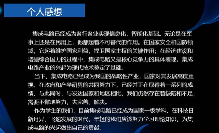 1、课堂理论教学过程中结合产业发展,充分分析本专业特色,针对专业教育开展思政建设,构建数字集成电路设计方法+隐形思政教育的理论教育体系。从中兴受罚华为被禁,缺芯之痛,触动了每一个中国人,国内外产业发展现状跟本课程教学内容密切相关,可以在多个知识单元结合最新前沿发展现状对学生开展隐性思政教育。