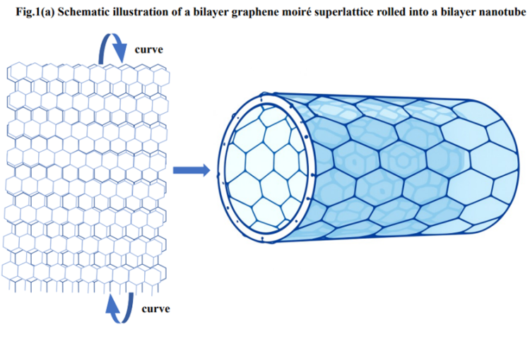 扭转双层石墨烯(Twisted Bilayer Graphene, TBG)因其莫尔超晶格结构及魔角平带所带来的强关联行为,已成为近年二维凝聚态物理的重要研究前沿。现有研究多集中于平面 TBG 的静态电子结构,而将其卷曲为纳米管结构(TBG Nanotube, TBG-NT)后,系统转化为具有轴向周期边界条件的准一维拓扑体系,在能带量子化与拓扑相位方面呈现新的物理特征。