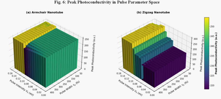 系统扫描不同手性(armchair、zigzag)、半径、脉冲参数后发现: