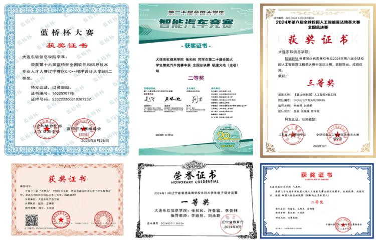 2.学科竞赛:近三年,本专业学生在学科竞赛中累计获省级及以上奖项618人次。其中,在“大唐杯”全国大学生信息通信技术大赛、中国大学生智能汽车竞赛等赛事中获国家级二等奖4项、三等奖6项;在全国大学生电子设计竞赛、蓝桥杯、全球校园人工智能算法精英大赛等比赛中亦多次取得省级一等奖等佳绩。通过参赛,学生在电子电路、编程开发、无人机技术等方向的实践能力得到扎实锻炼,为升学和就业打下坚实基础。