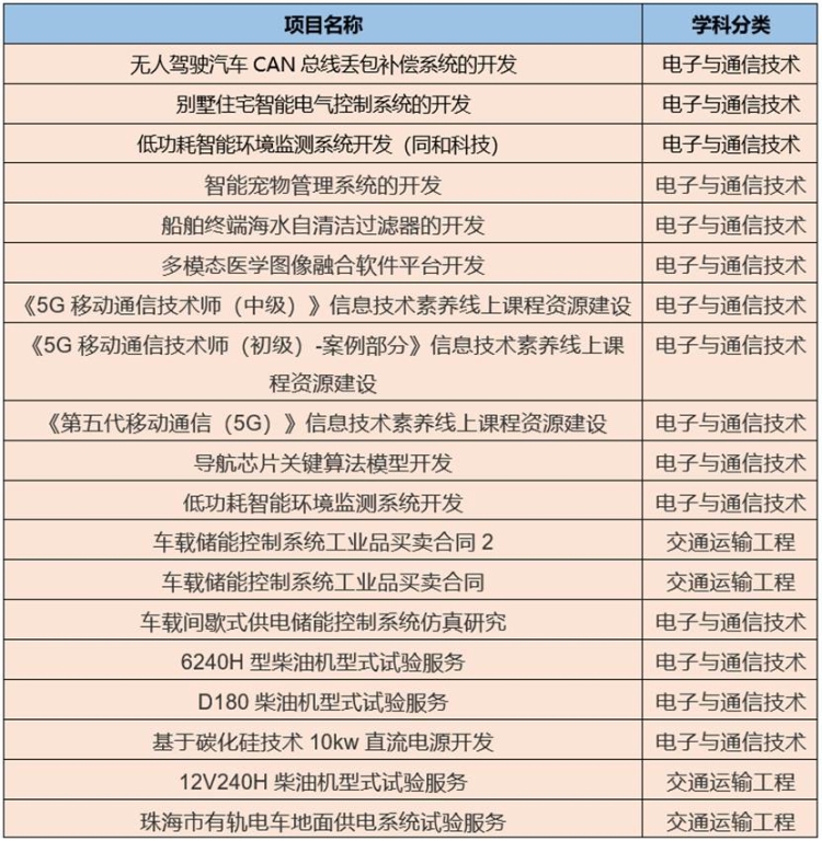 表3. 部分横向科研项目