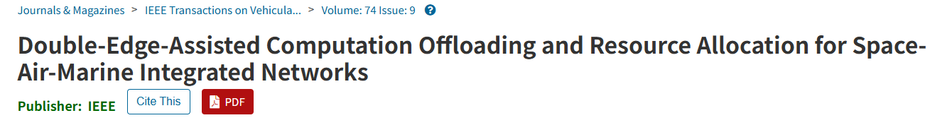 近日,大连东软信息学院智能与电子工程学院智能与通信工程系王珍在IEEE trans期刊 IEEE Transactions on Vehicular Technology 上发表了题为 Double-Edge-Assisted Computation Offloading and Resource Allocation for Space-Air-Marine Integrated Networks的论文。