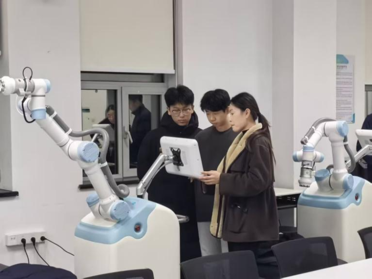 作为协作机器人领域的领军者,遨博方源的技术实力代表着行业前沿。此次双方合作的“AI赋能协作型机器人系统教学实践师资培训”项目,不仅是教育部产学合作协同育人项目的重要落地,更是未来机器人产业学院践行“产教融合、协同育人”模式的生动实践。新落成的康复与辅助机器人实验室,彻底打破了传统教学“重理论、轻实践”的壁垒。实验室引进的四台“四合一AI理疗机器人”,集智能艾灸、点阵波、热疗、一指禅四大功能于一体,融合了六轴协作机械臂、高精度力控与3D视觉感知技术。这不仅是一台理疗设备,更是一个集机器人控制、AI算法、数字孪生、人机交互于一体的“移动实训平台”。